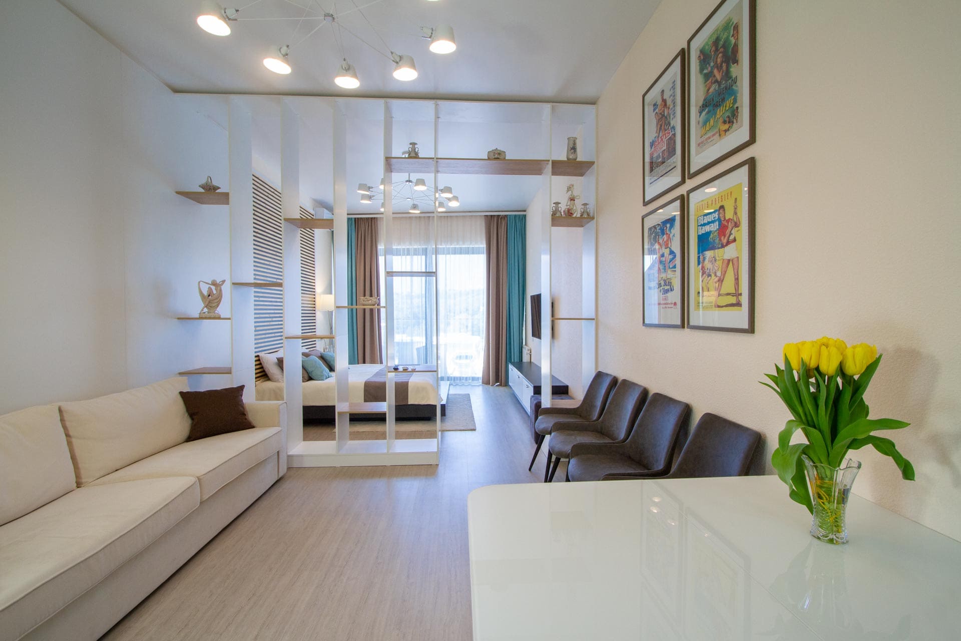 Все апартаменты оформлены в современном стиле с панорамным остеклением.