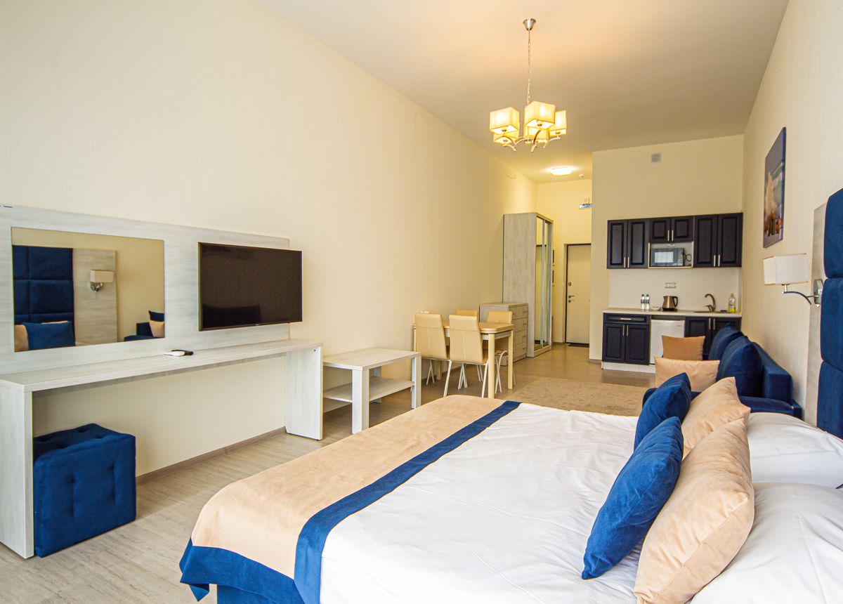 Расположенный прямо у воды, комплекс удивляет с первого взгляда: панорамные апартаменты с видом на море, пляж и архитектура, вдохновлённая морскими волнами. Здесь нет суеты — только тишина, свежий бриз и эстетика в каждой детали.